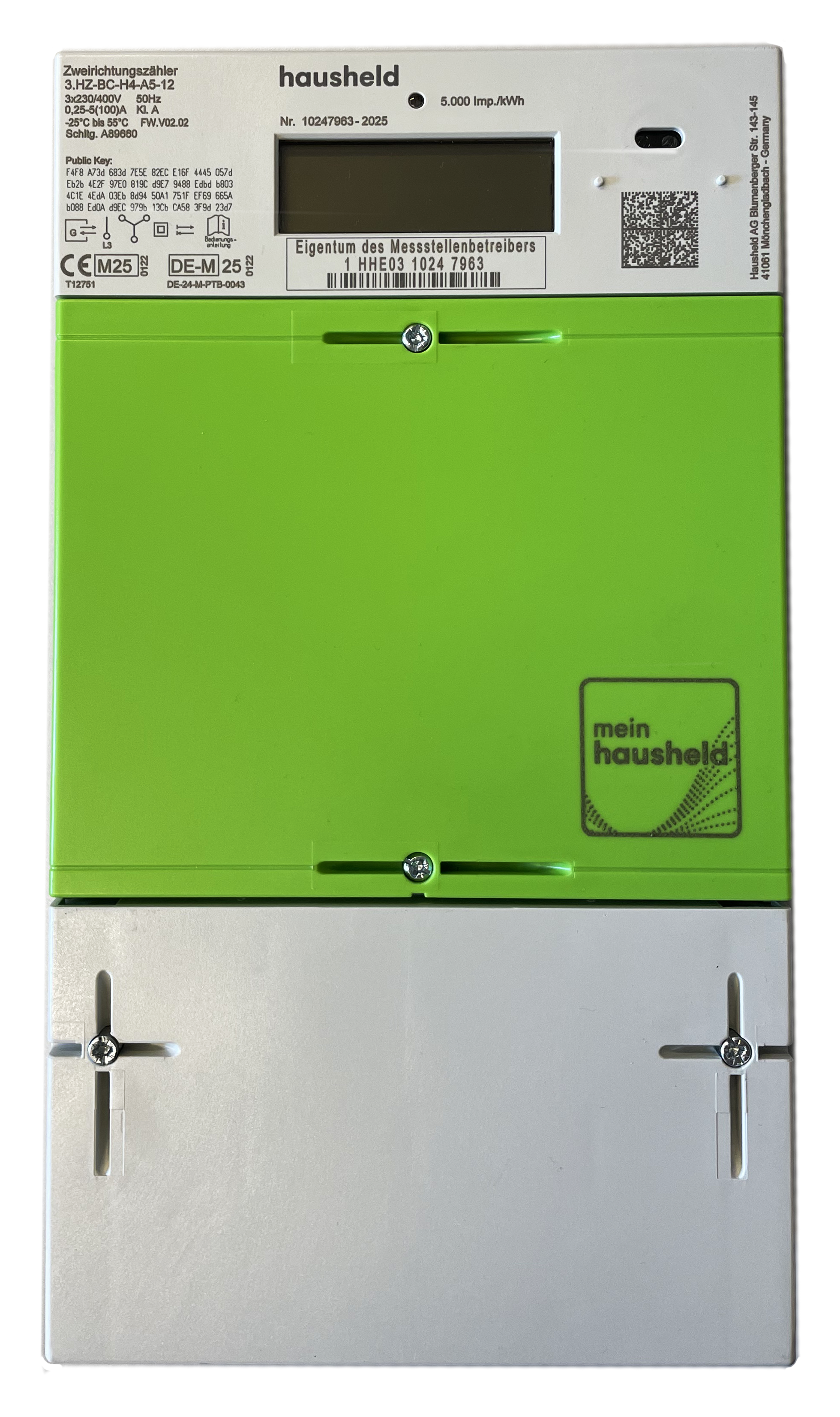 Moderne Messeinrichtung (mMe), die zusammen mit dem Smart Meter Gateway (in der Ortsnetzstation), das intelligente Messsystem bildet (iMSys).